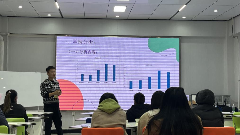 李老师以建筑工程系“专升本”学生为例,从学情分析的撰写及课堂教学设计两方面做经验分享,通过对学生入学前成绩、政治面貌等进行分析,探明学生的学习起点。课前预留预习作业、制作思维导图,准确地把握学生的思维脉搏。李老师强调在课堂教学设计中要因人而异,有所区分,根据有差异的学生设计有差异的课堂。