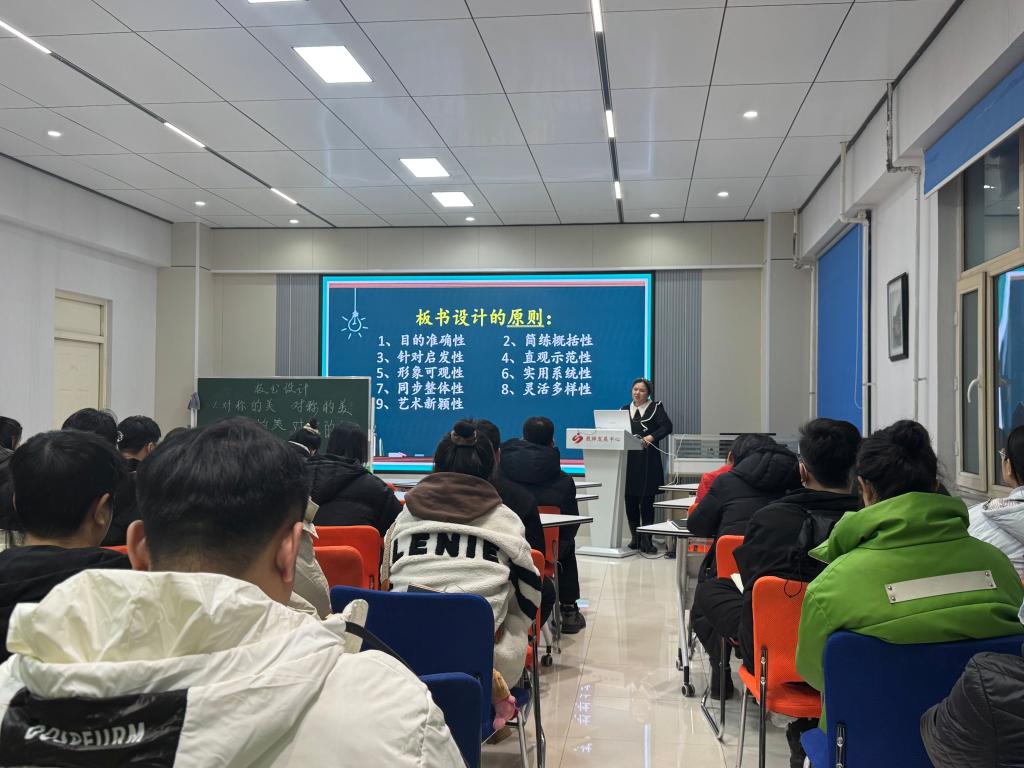 本次沙龙活动,教师发展中心邀请齐齐哈尔高等师范专科学校书法教师王云,围绕板书设计与汉字书写进行专题辅导。王云老师通过现场书写、板书分析、书法点评等方式,就如何提高板书设计与汉字书写能力提出建议。