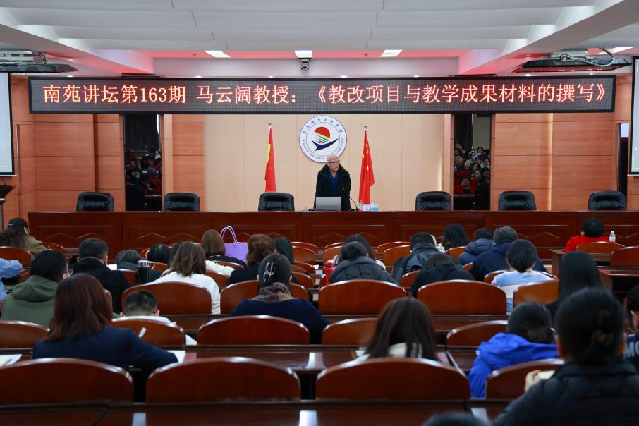 13日下午,南苑讲坛第163期在图书馆601报告厅举行,马云阔教授应邀作“教改项目与教学成果材料的撰写”专题报告,各教学单位领导、骨干教师200余人参会。