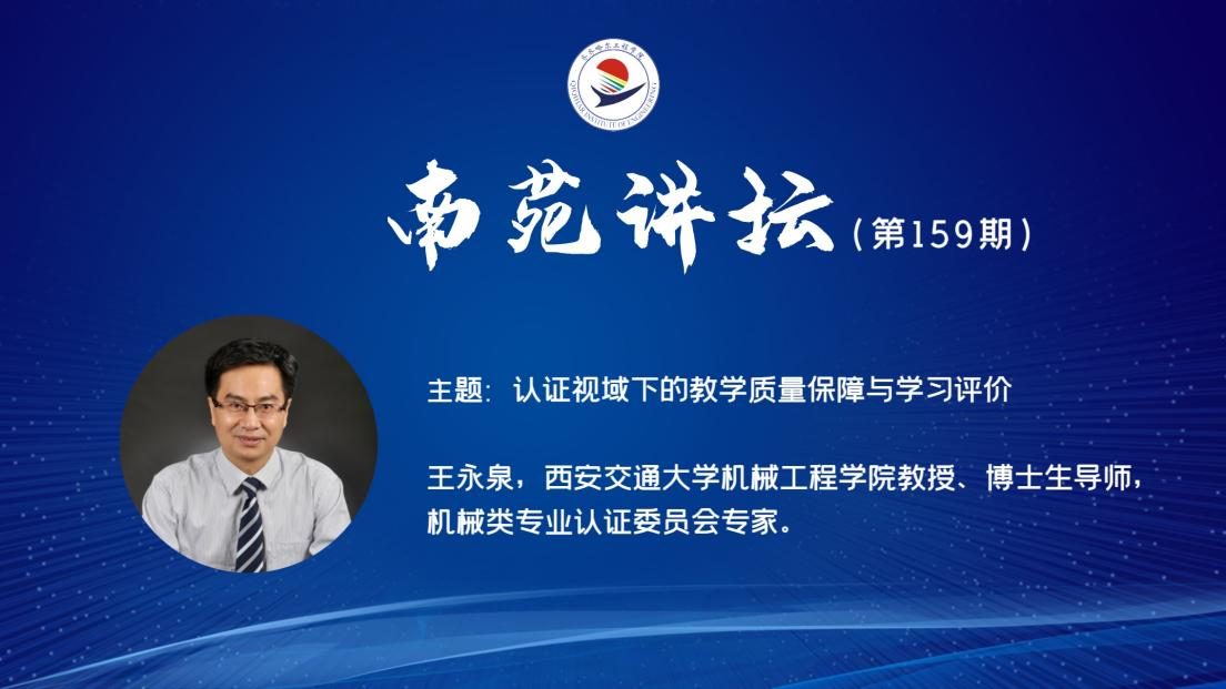 11月15日下午,学院第159期南苑讲坛如期举行,西安交通大学王永泉教授应邀作《认证视域下的教学质量保障与学习评价》专题讲座。学院全体教师在线收看,教师发展中心主任潘宇担任此次学习活动的主持人。