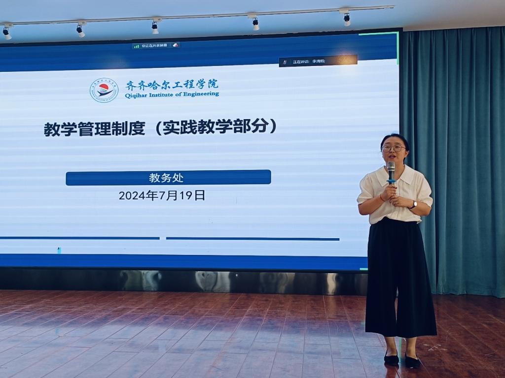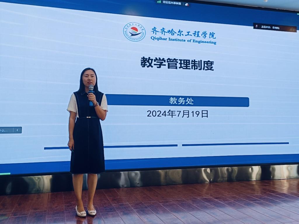 7月19日,2024年新教师岗前培训班进入第二天的培训日程,培训分为上下午进行,内容包括教师礼仪常识、齐齐哈尔工程学院章程解读、科研制度与教师发展、教学管理制度四个部分。