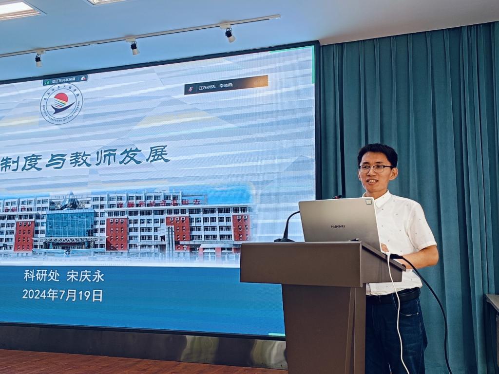 下午科研处教师宋庆永作题为《科研制度与教师发展》的讲座,从多角度、不同事例系统地讲解了学校科研制度,以及科研制度与教师发展之间的重要关系。让新教师了解到了学校对于科研工作的重视和支持力度。