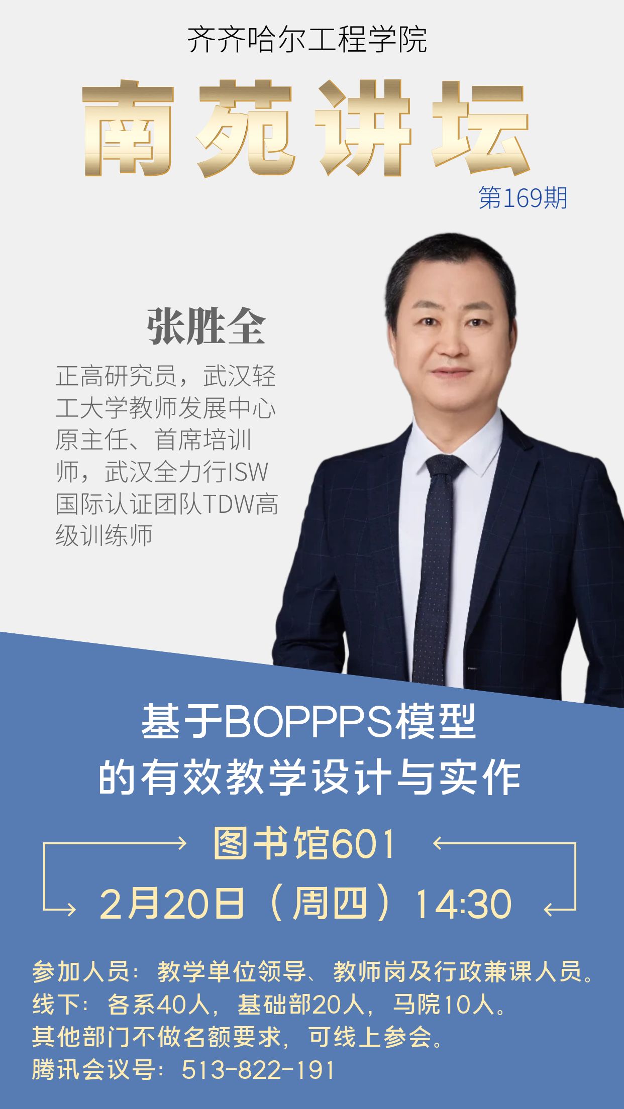 南苑讲坛第169期:基于BOPPPS模型的有效教学设计与实作工作坊