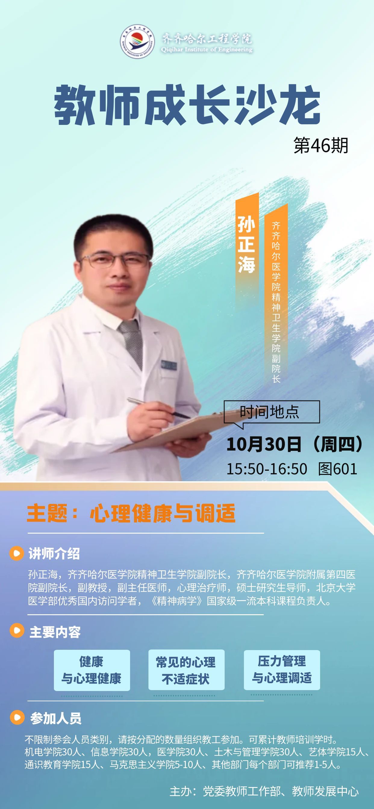 教师成长沙龙第46期:孙正海教授《心理健康与调适》